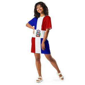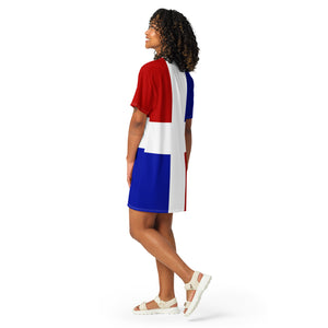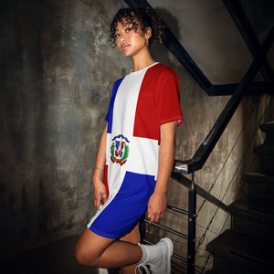 Represent Dominican Republic with this t-shirt dress designed with the Dominican Republic flag in mind. It's soft, smooth, stretchy, and will hold up after multiple washings.