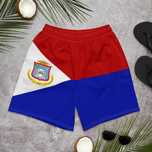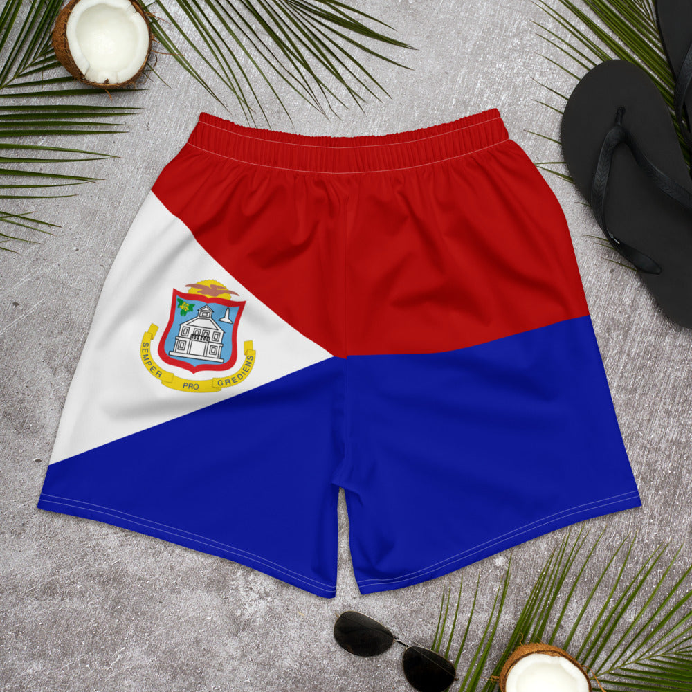 Represent Sint Maarten with this men's athletic shorts designed with the Sint Maarten flag in mind. The comfortable fit and length make them perfect for sports and working out, while the water-repellent quick-dry fabric ensures that they're also great for a quick swim. Or just throw them on as casual wear. Be patriotic with your daily routine.