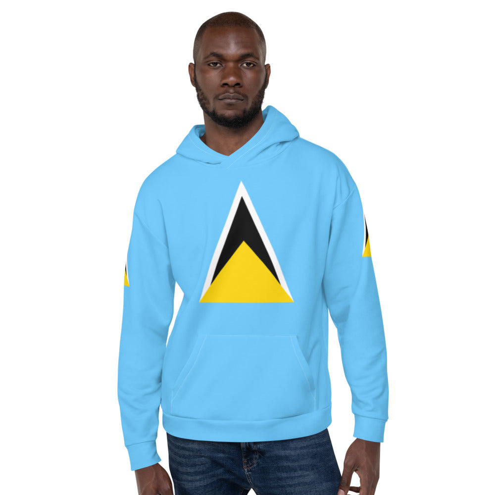 St. Lucia apparel and accessories. Men's, women's and kids clothing. Your St. Lucia flag and colors on regular and high-waist leggings, swimwear, shorts, tank tops, t-shirts, sports bras, hoodies, socks, hats and more. FREE shipping always.