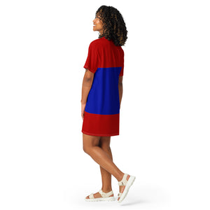 Represent Belize with this t-shirt dress designed with the Belize flag in mind. It's soft, smooth, stretchy, and will hold up after multiple washings.