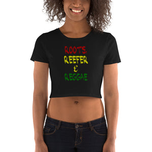 Represent the Caribbean with this women's crop top designed with Roots, Reefer and Reggae. This cropped tee is slim fit and is perfect for casual wear. Be patriotic with your daily routine.