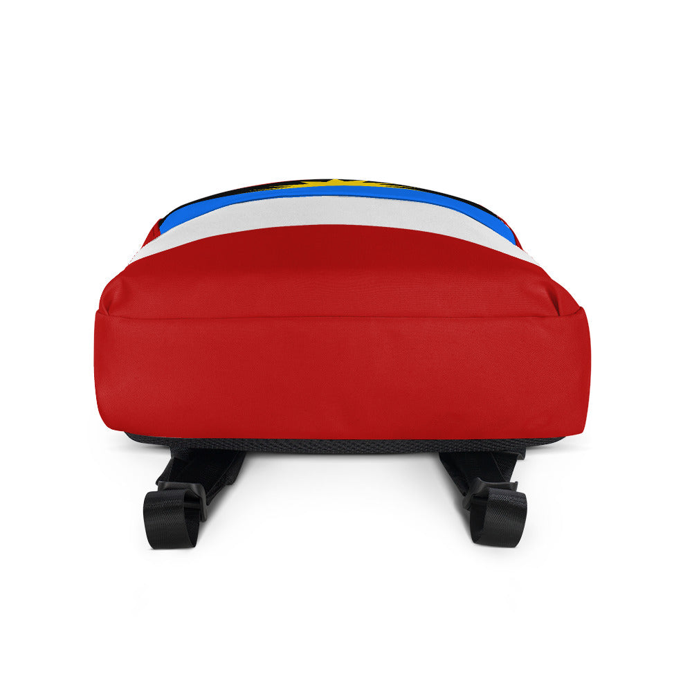 Represent Antigua with this medium size backpack designed with the Antigua flag in mind. It has plenty of room with a big inner pocket, separate section for a 15'' laptop, front pocket, and a hidden pocket at the back for valuables. The bag is made out of a water-resistant material. Be patriotic with your daily routine.