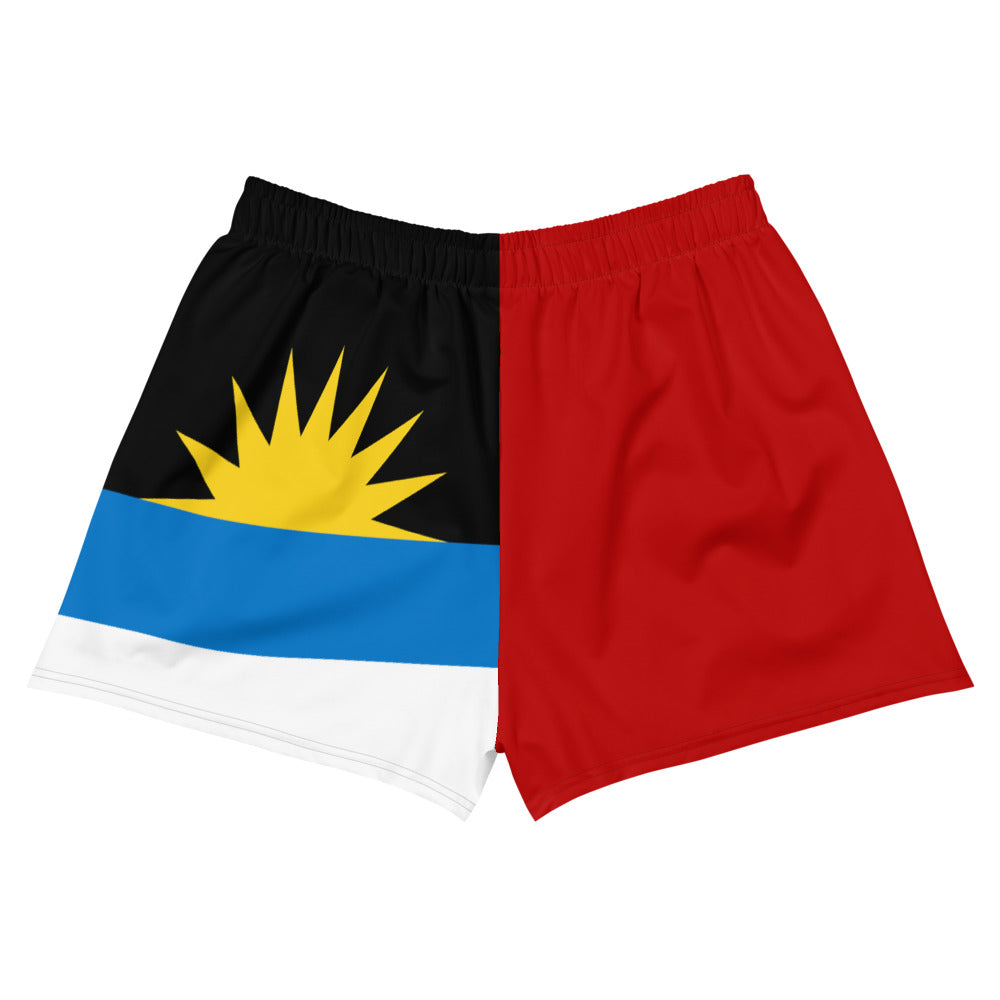 Represent Antigua with this women's athletic shorts designed with the Antigua flag in mind. The comfortable fit and length make them perfect for working out, while the water-repellent quick-dry fabric ensures that they're also great for a quick swim. Or just throw them on as casual wear. Be patriotic with your daily routine.