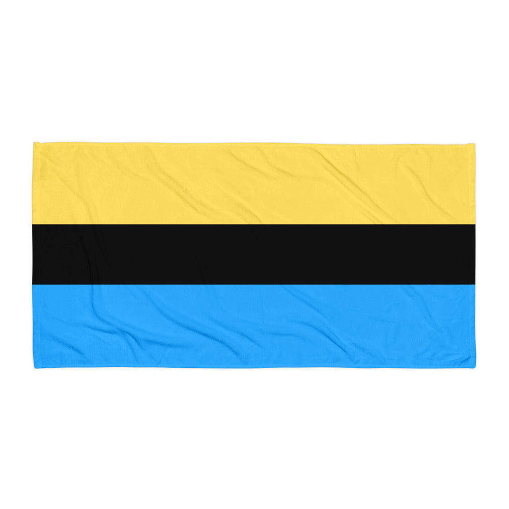Represent Bahamas with this beach towel designed with the Bahamas flag in mind. These towels are made from a cozy cotton terry and soft poly face. Be patriotic with your daily routine.
