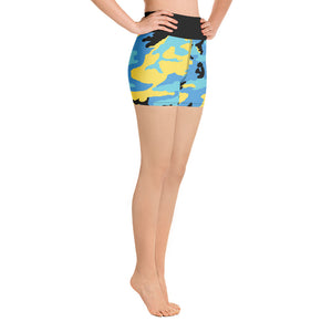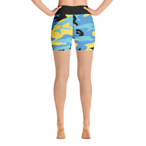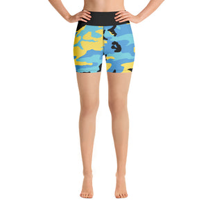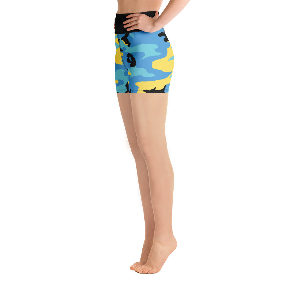Represent Bahamas with this yoga shorts camouflaged in the colors of the Bahamas flag. Excellent stretch and seams for durability and comfort. These women's shorts are perfect for working out or even just casual wear. Be patriotic with your daily routine.