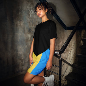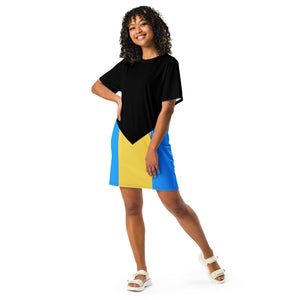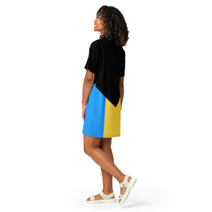 Represent Bahamas with this t-shirt dress designed with the Bahamas flag in mind. It's soft, smooth, stretchy, and will hold up after multiple washings.
