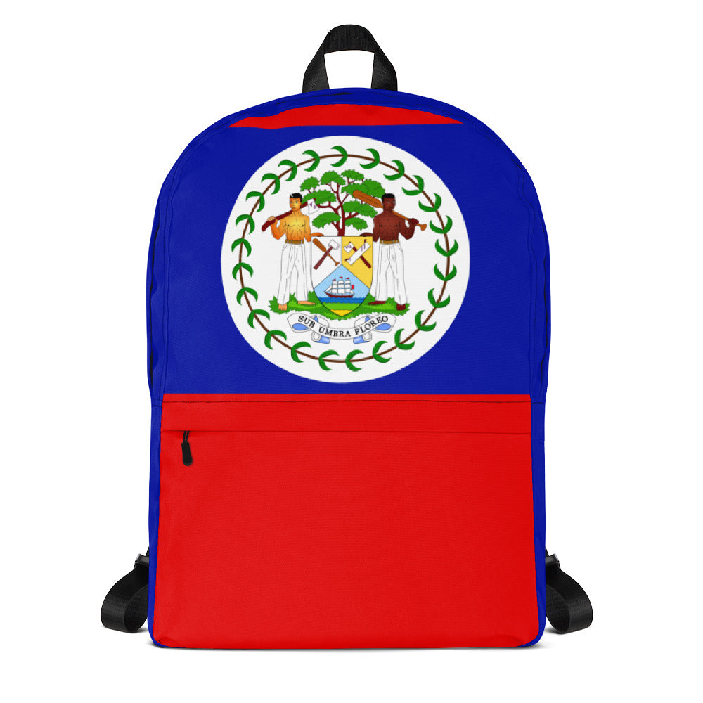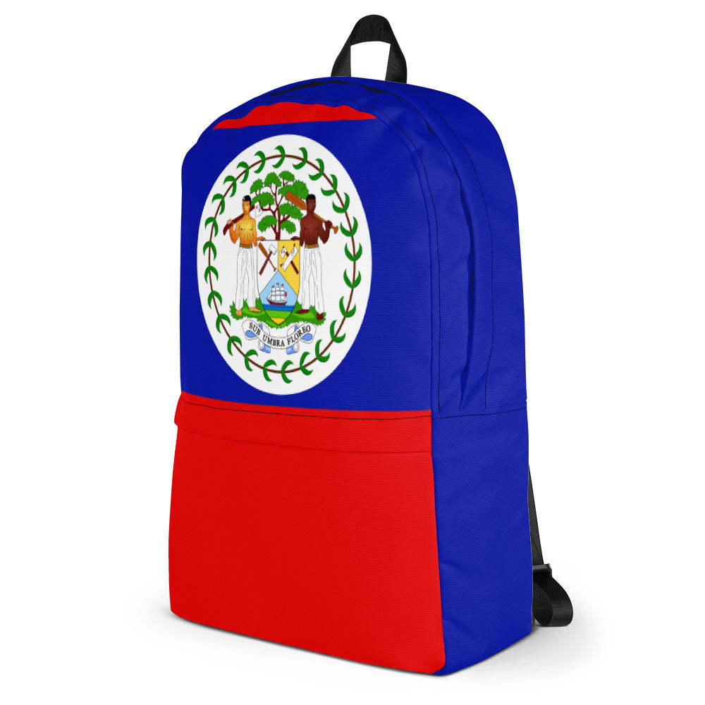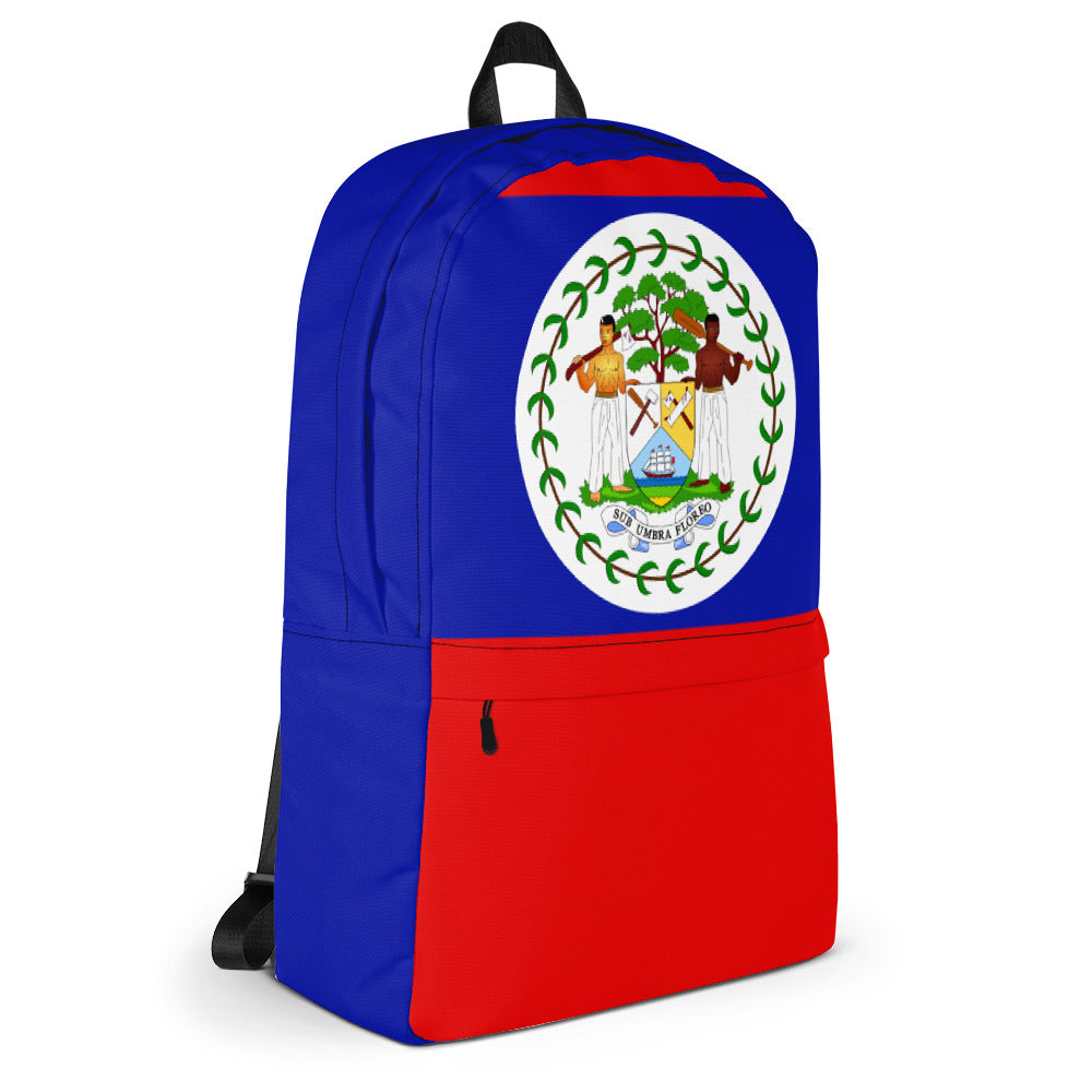 Represent Belize with this medium size backpack designed with the Belize flag in mind. It has plenty of room with a big inner pocket, separate section for a 15'' laptop, front pocket, and a hidden pocket at the back for valuables. The bag is made out of a water-resistant material. Be patriotic with your daily routine.