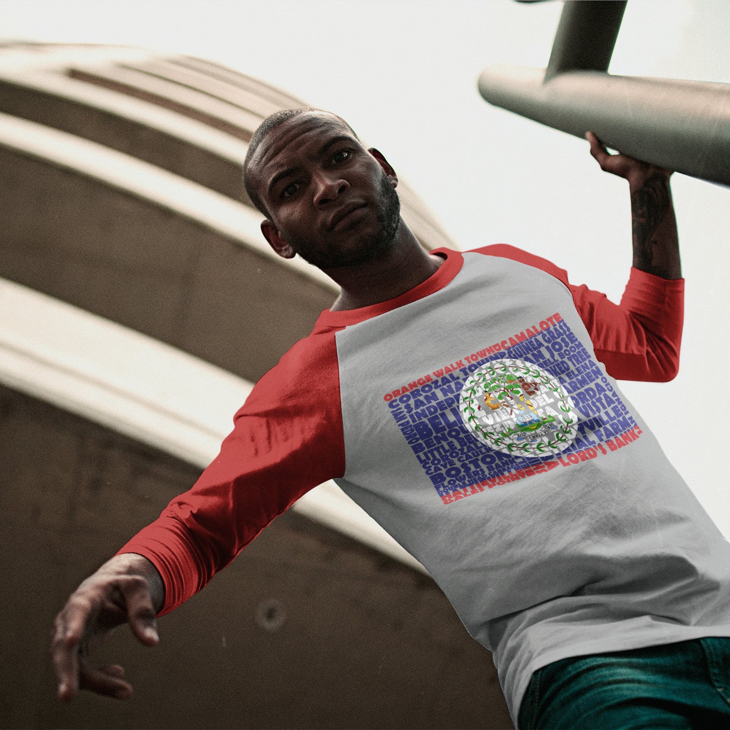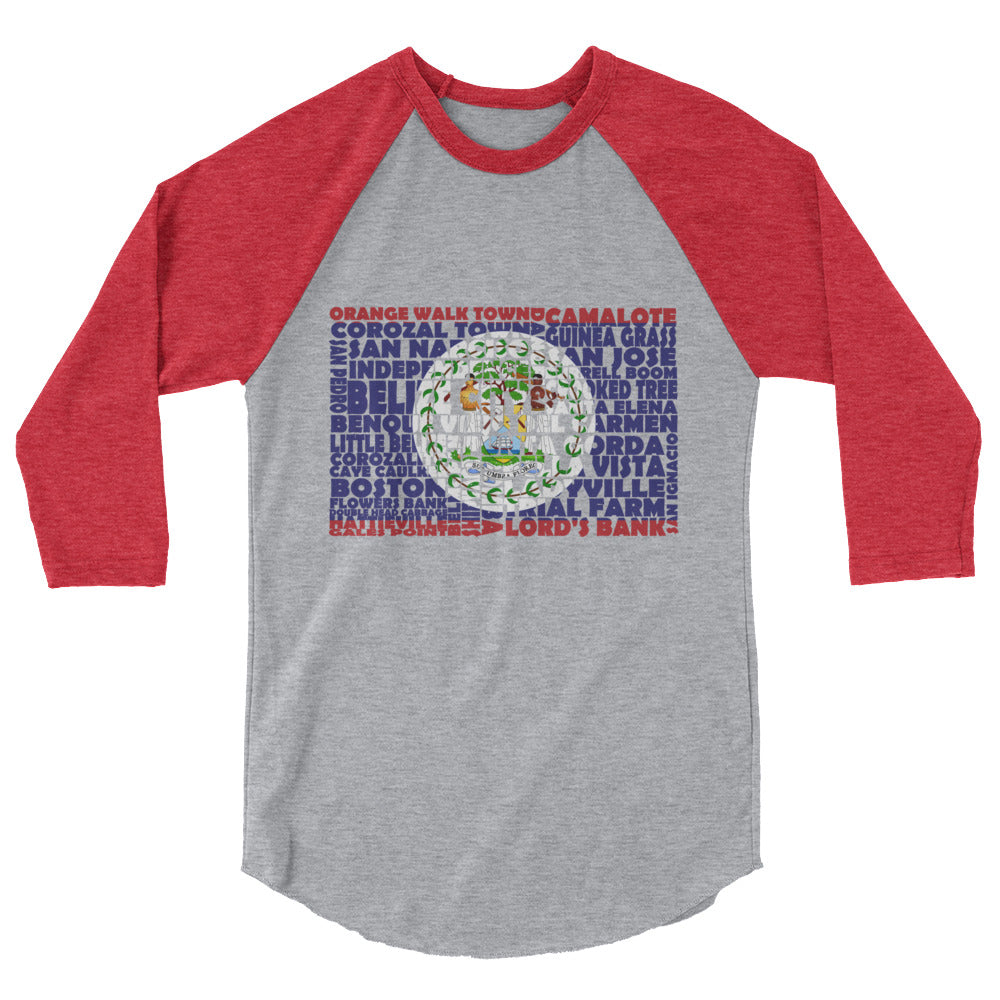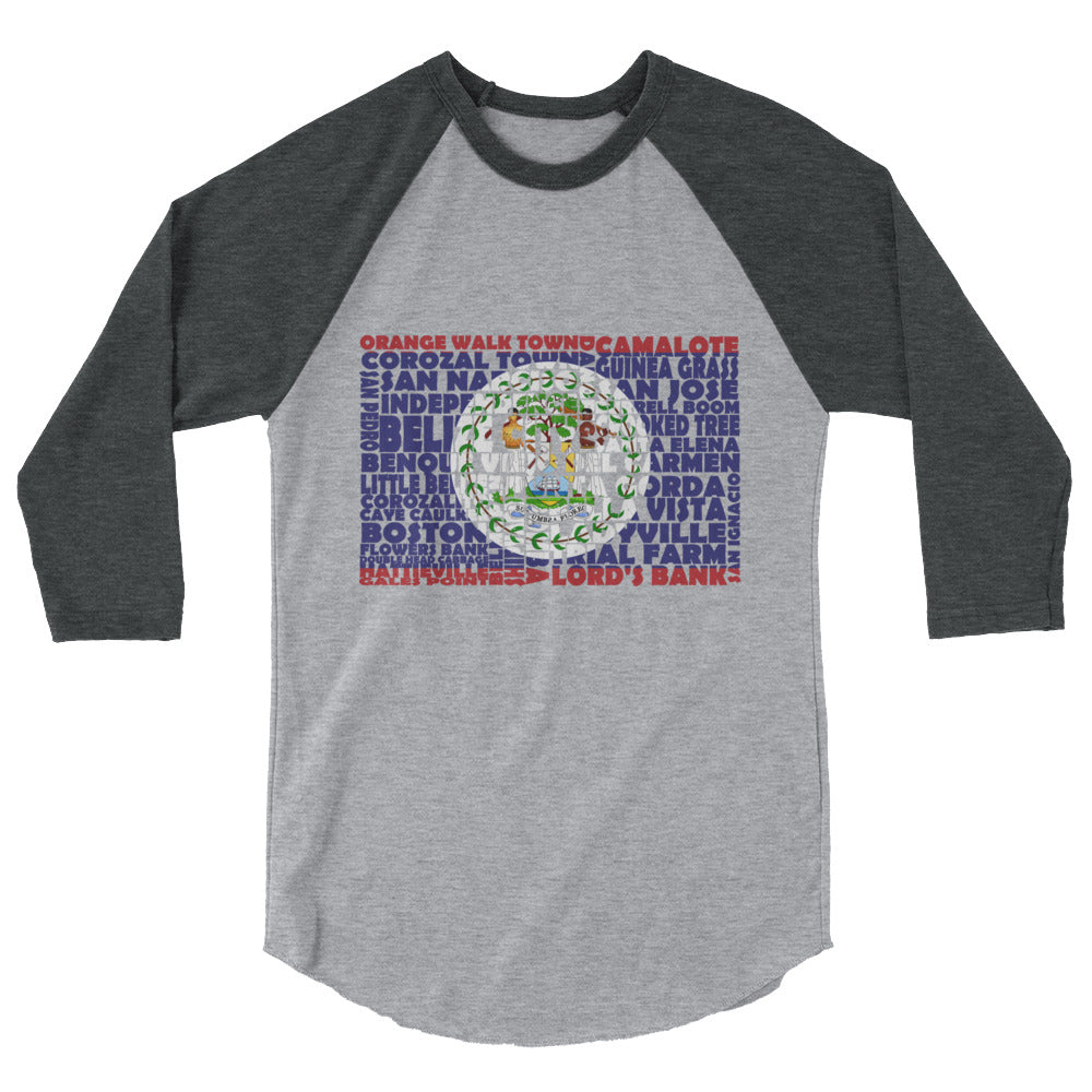 Represent Belize with this ¾ sleeve raglan tee designed with the Belize flag stenciled from its towns and cities. This unisex tee is made from 100% ring-spun cotton and is perfect for casual wear. Be patriotic with your daily routine.