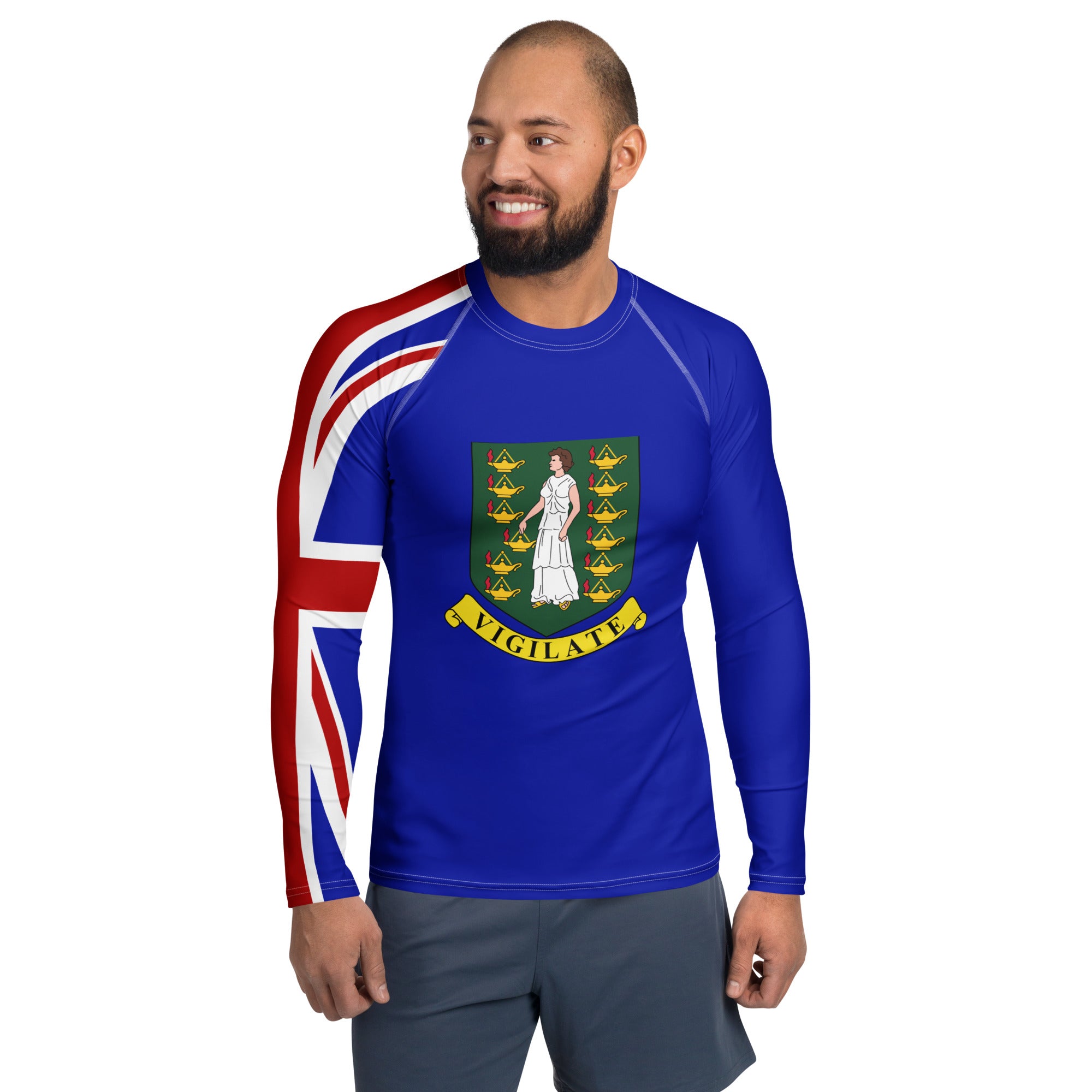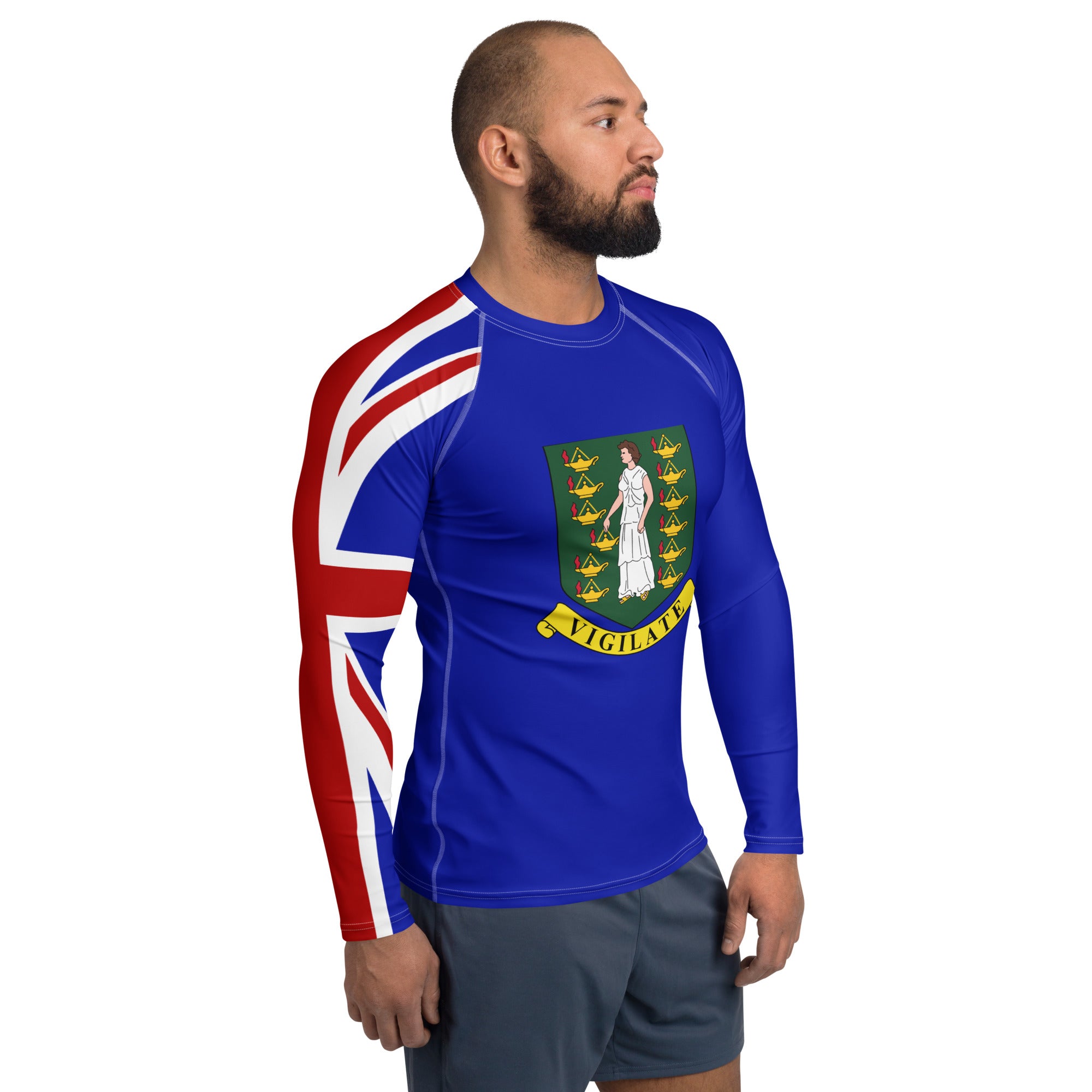 Represent British Virgin Islands with this Rash Guard built for performance and designed for patriots. Whether you're riding the waves, training hard, or just soaking up the island vibes, this sleek, long-sleeve rash guard keeps you protected while showcasing your British Virgin Islands pride. With a slim, athletic fit, ergonomic flat seams, and premium four-way stretch fabric, it moves with you effortlessly. UPF 50+ protection shields you from the Caribbean sun, and the extended length ensures a secure, comfortable fit for any adventure. Rep British Virgin Islands with every move.