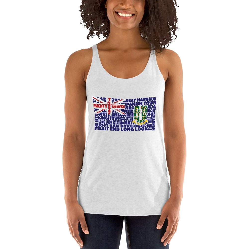 Represent British Virgin Islands with this women's tank top designed with the British Virgin Islands flag stenciled from its towns and cities. This Tank Top is soft, lightweight, and form-fitting and perfect for working out or just casual wear. Be patriotic with your daily routine.