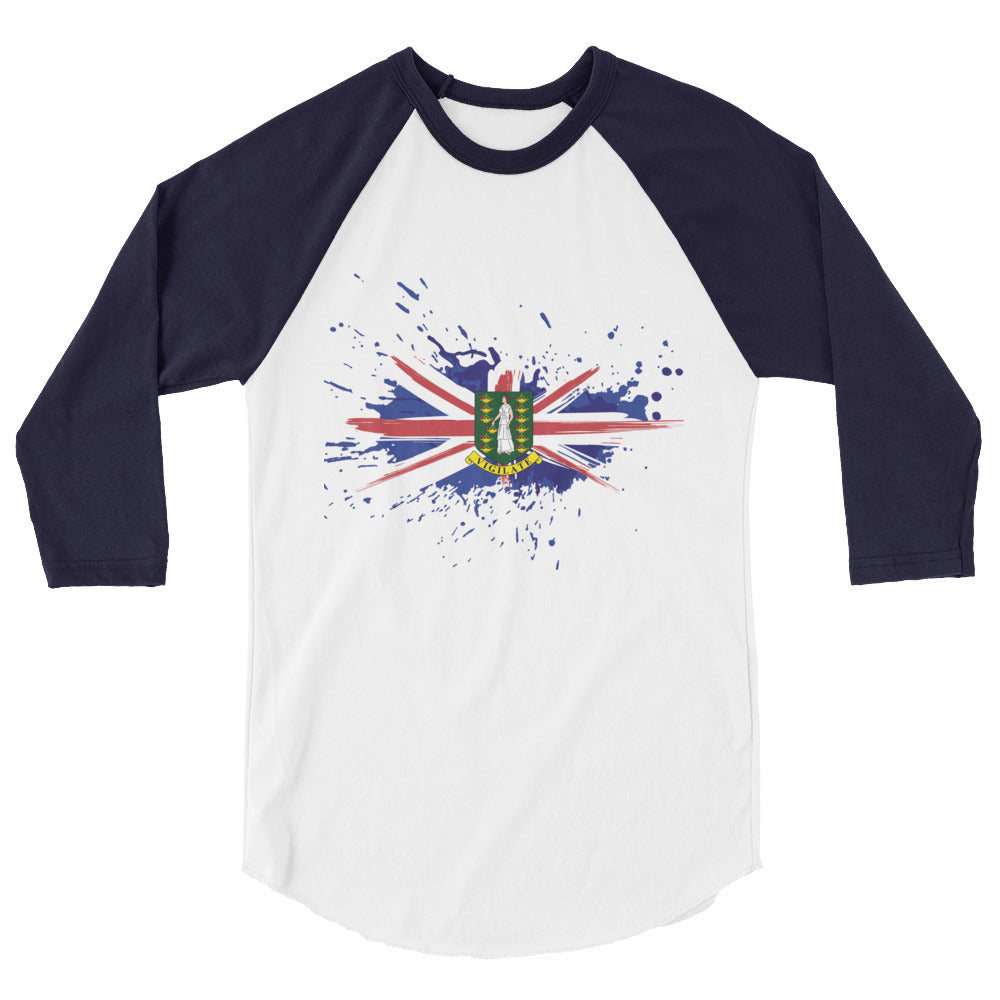 Represent British Virgin Islands with this ¾ sleeve raglan tee designed with the British Virgin Islands flag in paint splashes and strokes. This unisex tee is made from 100% ring-spun cotton and is perfect for casual wear. Be patriotic with your daily routine.
