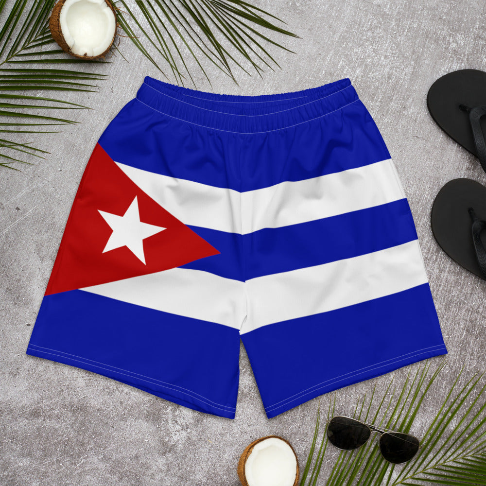 Represent Cuba with this men's athletic shorts designed with the Cuba flag in mind. The comfortable fit and length make them perfect for sports and working out, while the water-repellent quick-dry fabric ensures that they're also great for a quick swim. Or just throw them on as casual wear. Be patriotic with your daily routine.