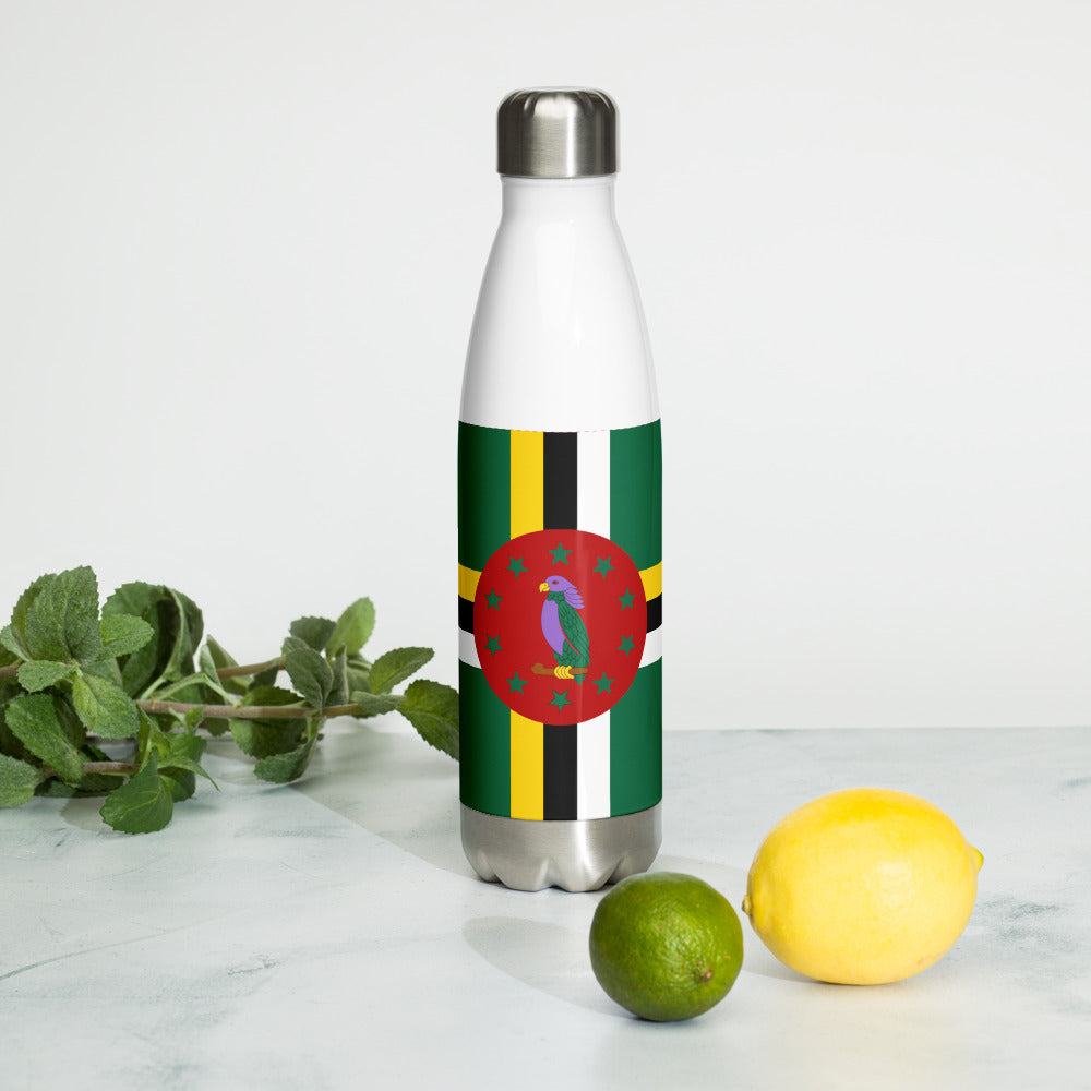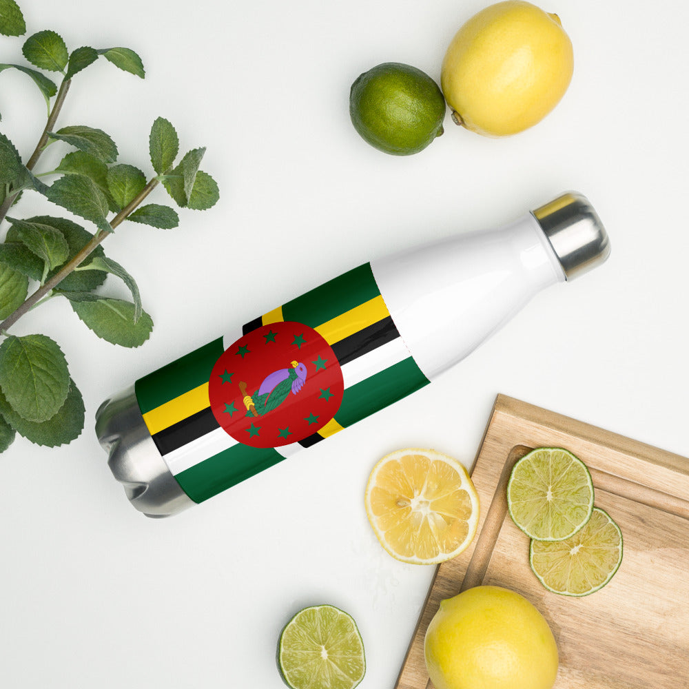 Represent Dominica with this 17-ounce, double-walled stainless steel water bottle. It will keep your drink of choice hot or cold for hours. It also features an odor- and leak-proof cap. Throw it in your car's cup holder on your way to work, take it with you on hikes, or toss it in your bag for any time you get thirsty.