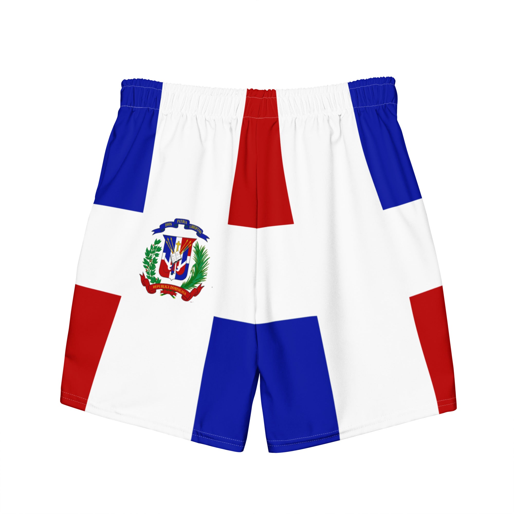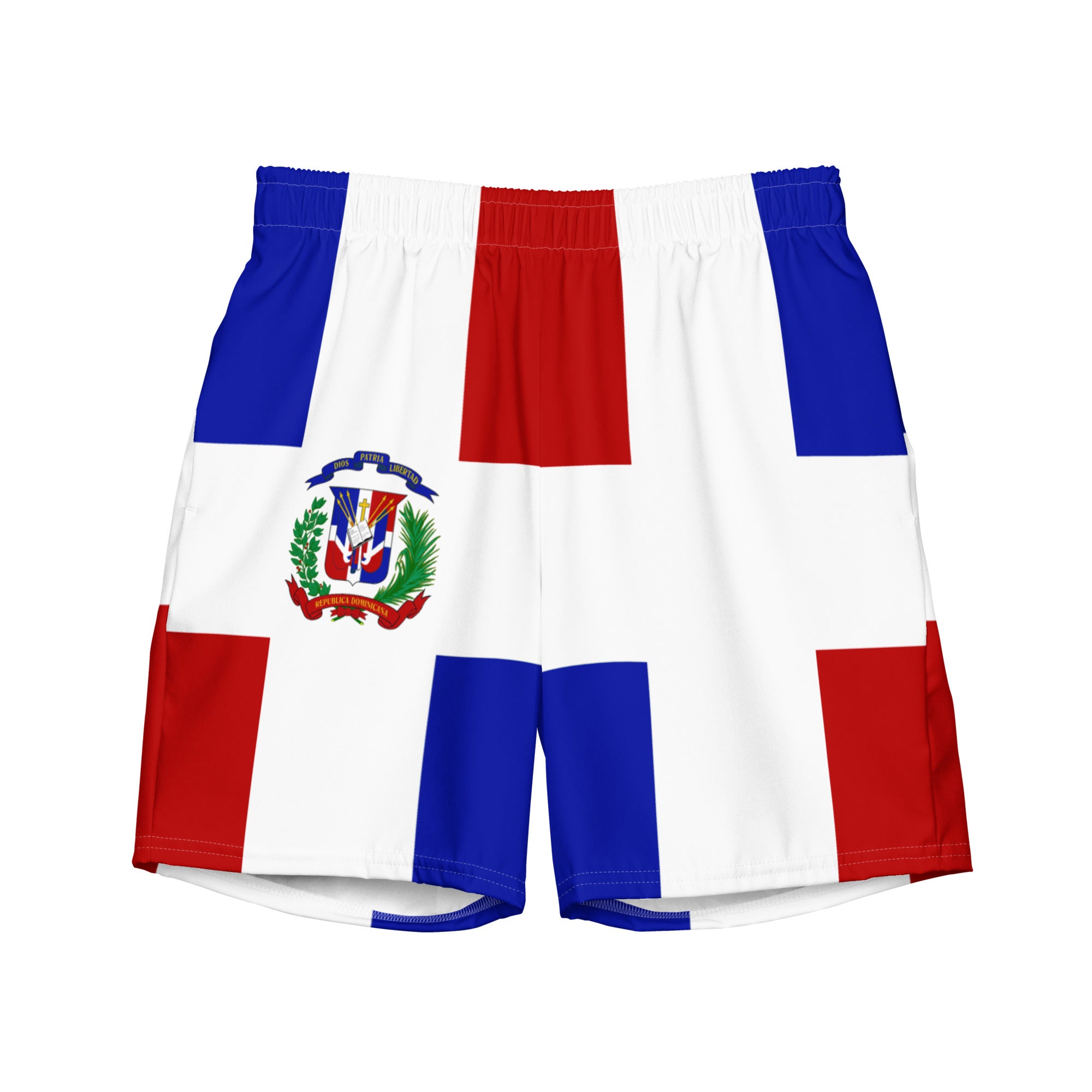 Represent Dominican Republic with this men's swim trunks designed with the Dominican Republic flag in mind. The comfortable fit and quick dry fabric for a good swim. The anti-chafe inner liner also ensure maximum comfort. Be patriotic with your daily routine.