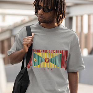 Represent Grenada with this men's t-shirt designed with the Grenada flag as a bar code. It's soft, heavy-duty, and will hold up after multiple washings. Be patriotic with your daily routine.