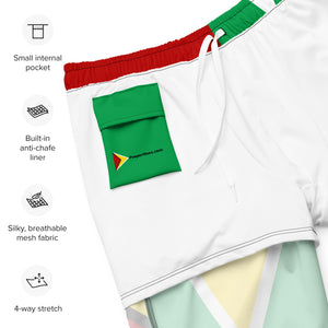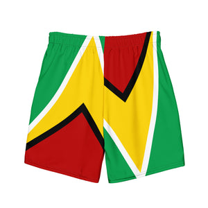 Represent Guyana with this men's swim trunks designed with the Guyana flag in mind. The comfortable fit and quick dry fabric for a good swim. The anti-chafe inner liner also ensure maximum comfort. Be patriotic with your daily routine.