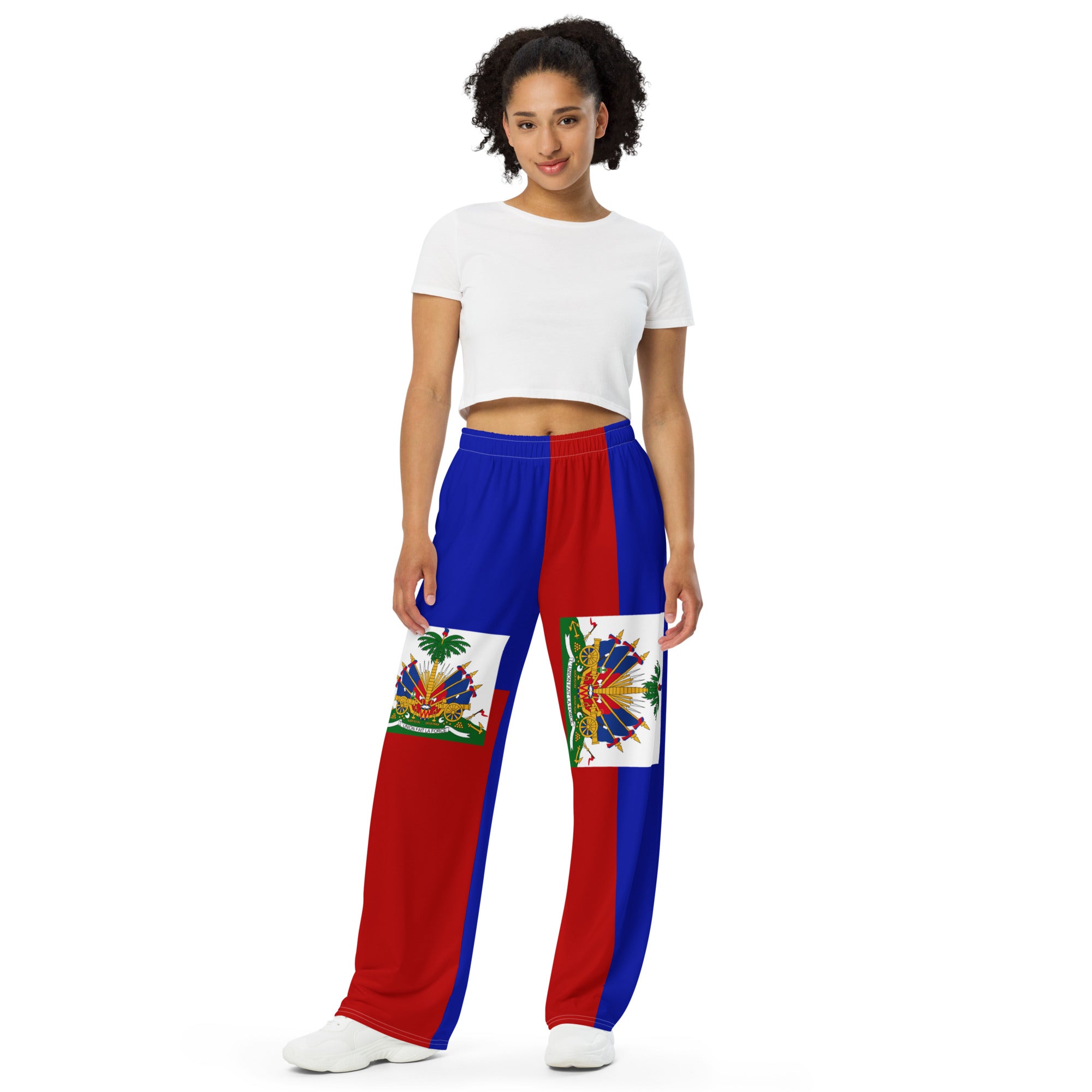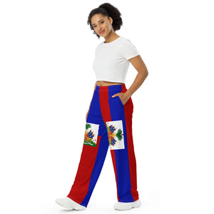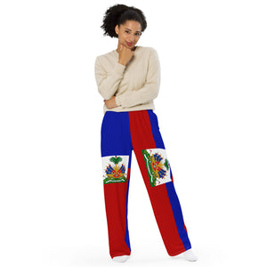Represent Haiti and get the comfort of pajamas in this stylish pair of wide-leg pants. With the adjustable waist and a smooth, comfortable stretchy fabric, the Haiti flag design will never lose its color intensity.