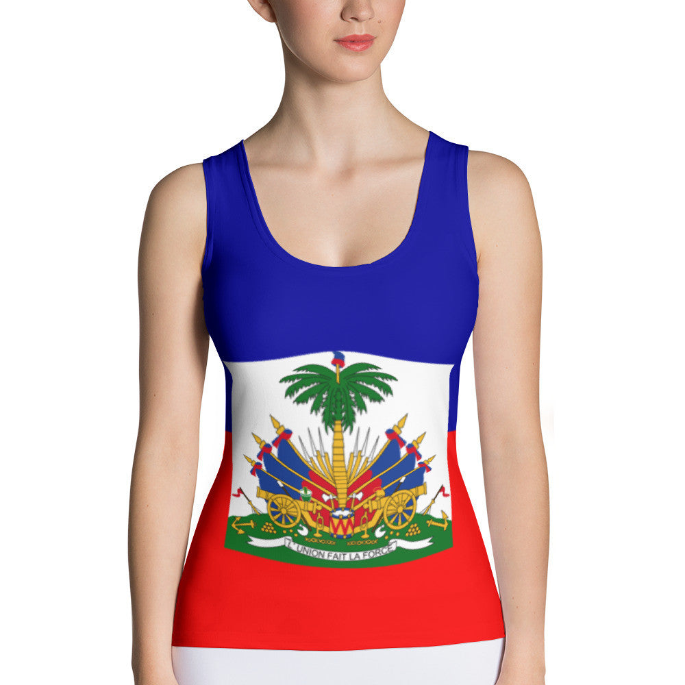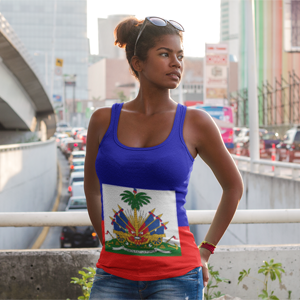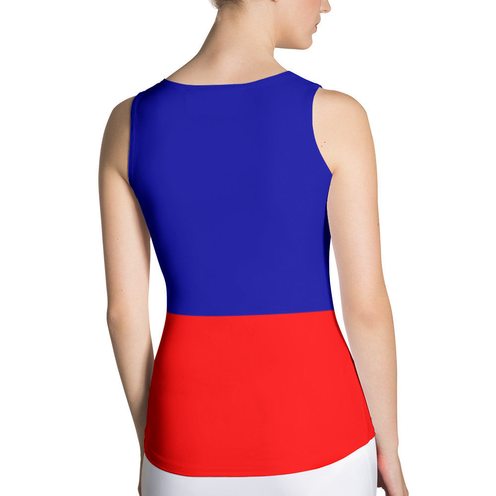 Represent Haiti with this fitted tank top based on the Haiti flag. Perfect exercising or casual wear.