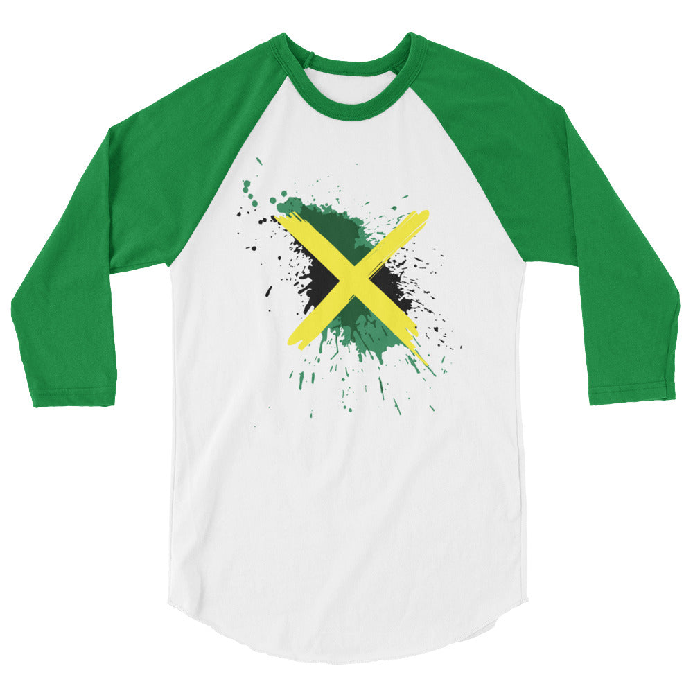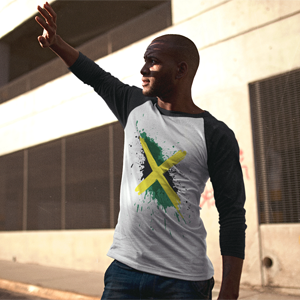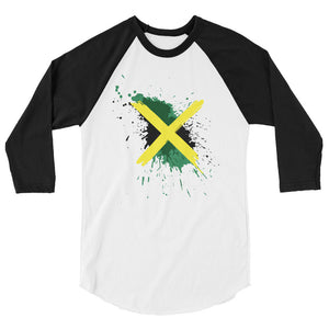Represent Jamaica with this ¾ sleeve raglan tee designed with the Jamaica flag in paint splashes and strokes. This unisex tee is made from 100% ring-spun cotton and is perfect for casual wear. Be patriotic with your daily routine.