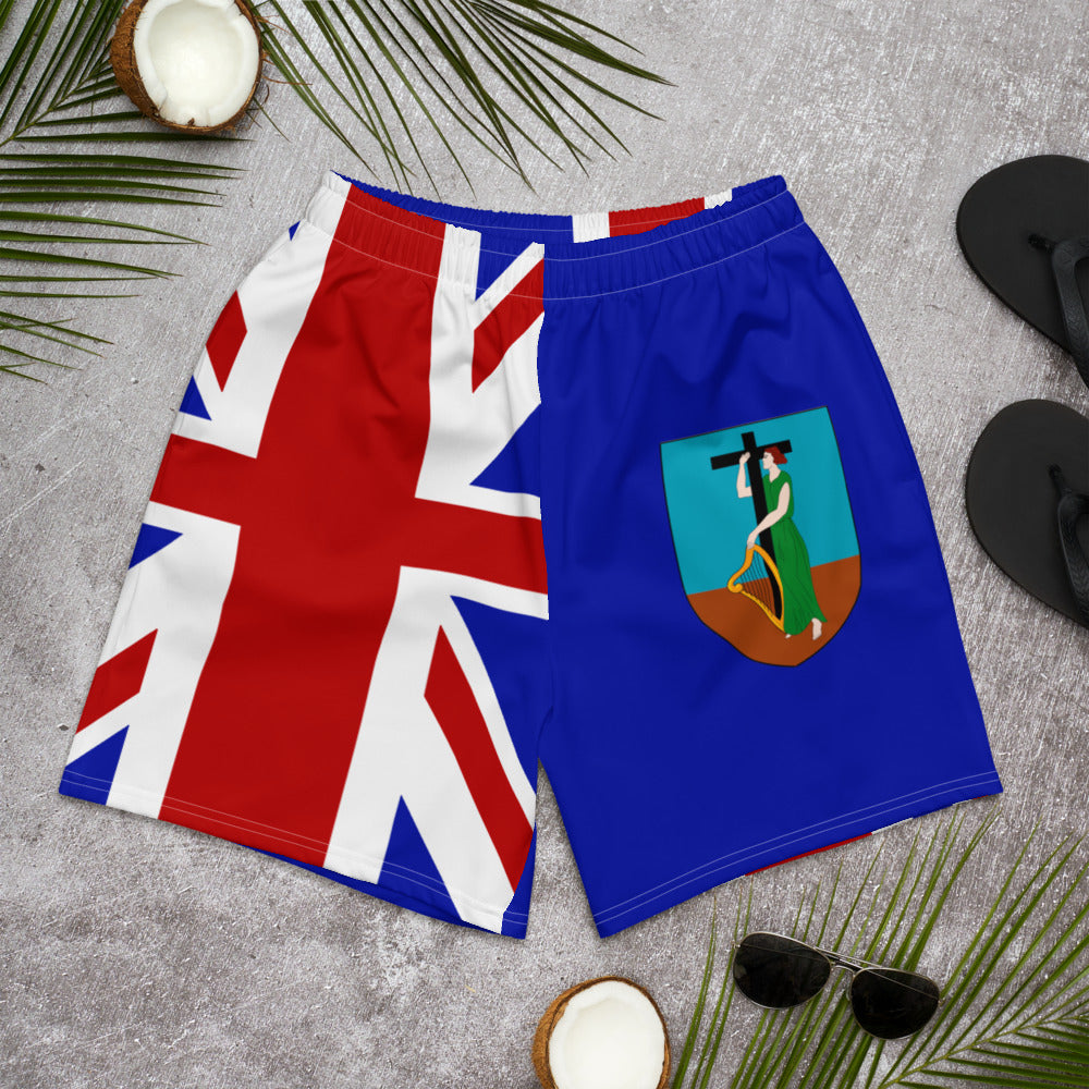 Represent Montserrat with this men's athletic shorts designed with the Montserrat flag in mind. The comfortable fit and length make them perfect for sports and working out, while the water-repellent quick-dry fabric ensures that they're also great for a quick swim. Or just throw them on as casual wear. Be patriotic with your daily routine.
