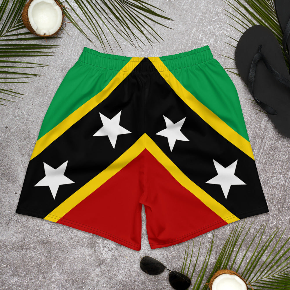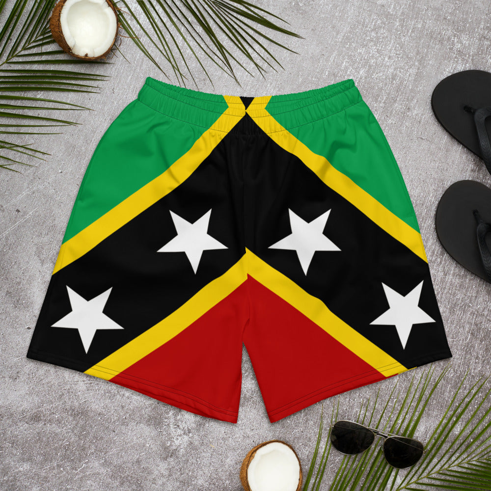 Represent St. Kitts and Nevis with this men's athletic shorts designed with the St. Kitts and Nevis flag in mind. The comfortable fit and length make them perfect for sports and working out, while the water-repellent quick-dry fabric ensures that they're also great for a quick swim. Or just throw them on as casual wear. Be patriotic with your daily routine.