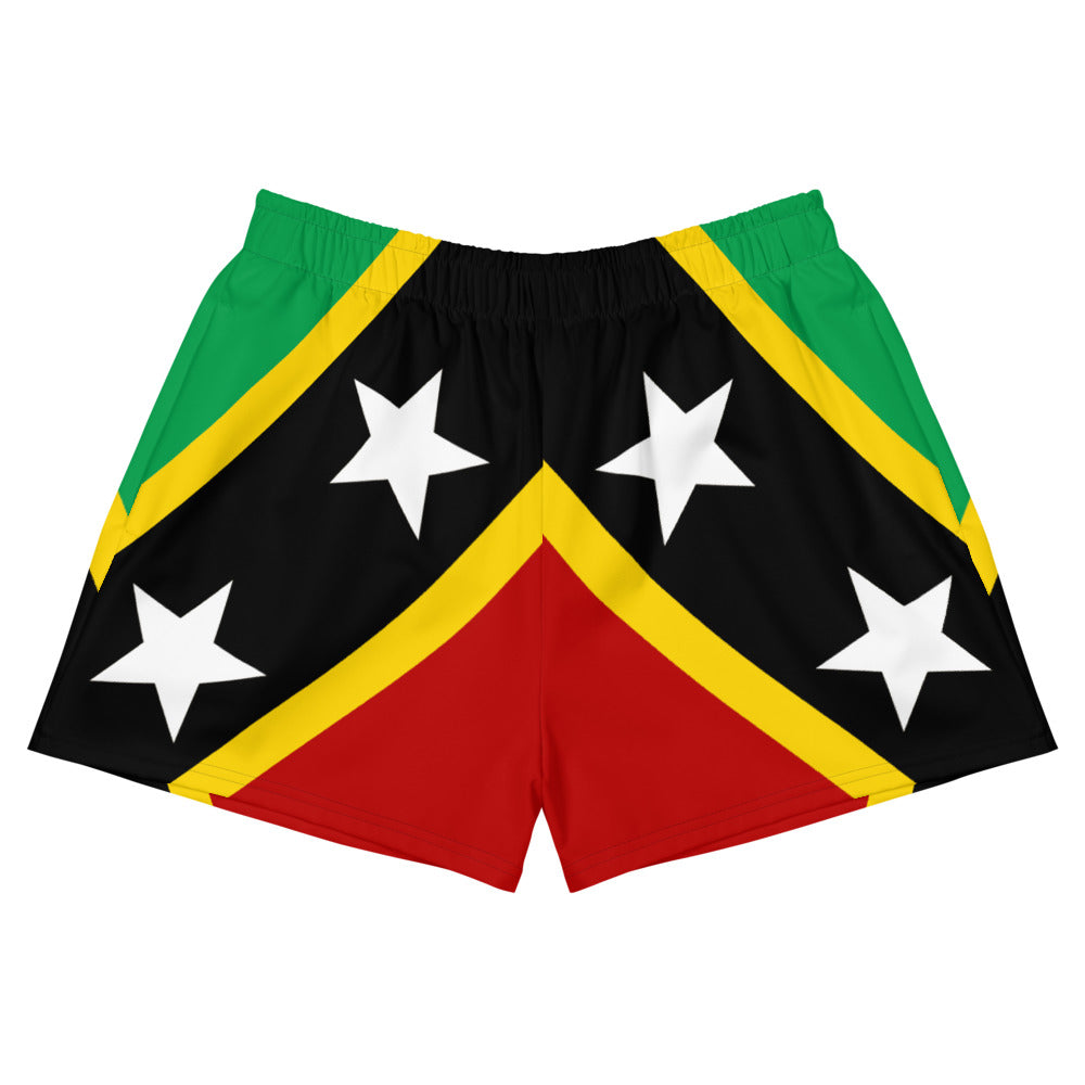 Represent St. Kitts and Nevis with this women's athletic shorts designed with the St. Kitts and Nevis flag in mind. The comfortable fit and length make them perfect for working out, while the water-repellent quick-dry fabric ensures that they're also great for a quick swim. Or just throw them on as casual wear. Be patriotic with your daily routine.