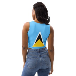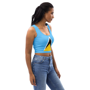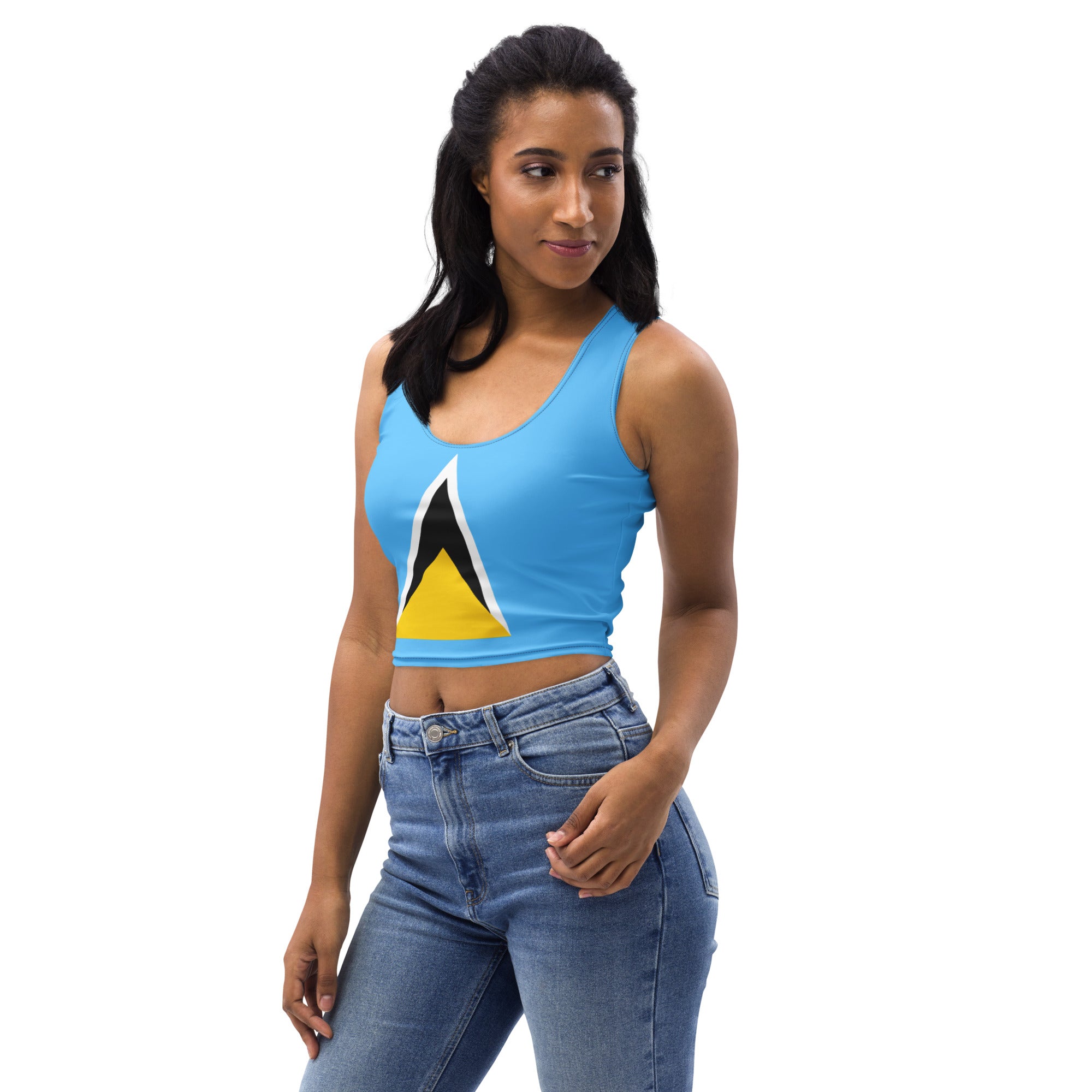 Represent St. Lucia with this fitted tank top crop top based on the St. Lucia flag. Perfect for exercising or casual wear.