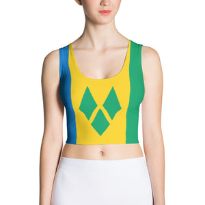 Represent St. Vincent with this fitted tank top crop top based on the St. Vincent flag. Perfect for exercising or casual wear.